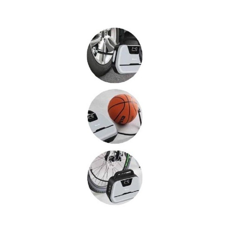 Courant maximale 10A - Pression maximale 150PSA. Cordon allume cigare de 2,80m et embouts de gonflage fournis Affichage numérique sur écran LCD du réglage de la pression pour ajuster facilement la pression souhaitée PSI/BAR/KPA et KG/m3 pour l'application souhaitée. Il est doté d'une lampe de travail intégrée qui facilite le gonflage par faible luminosité ou la nuit, avec 3 modes d'éclairage.