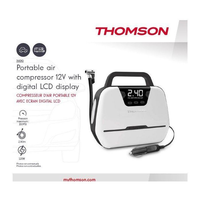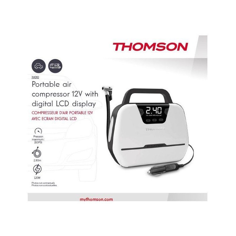 Compresseur d'air - THOMSON - 12V - Ecran digital LCD - Lampe de travail intégrée - Pression maximale 150PSA
