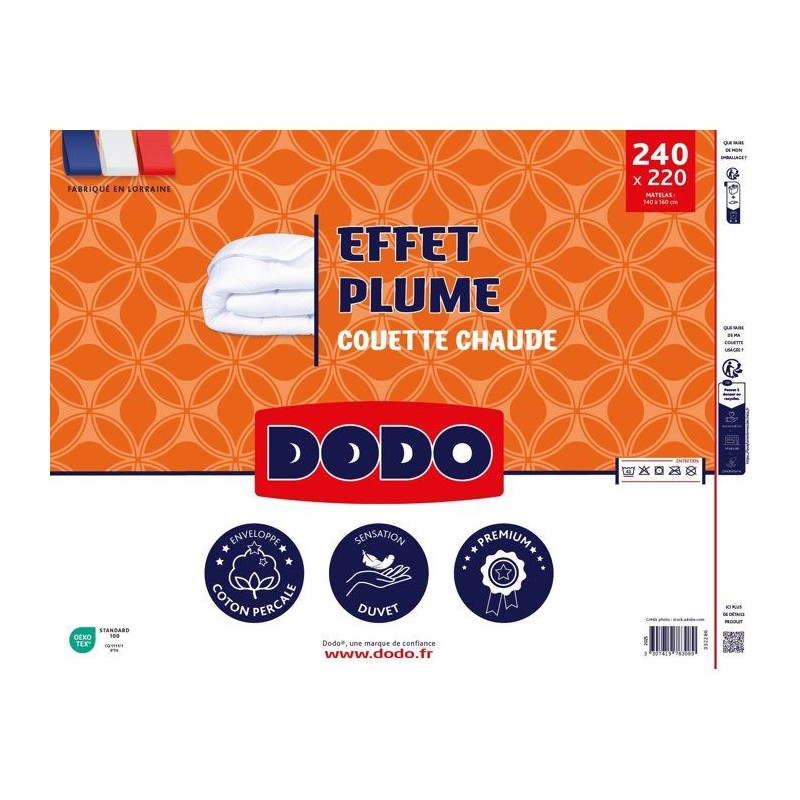 DODO - Couette chaude - Effet Plume - 220 x 240 cm - 400 g/m² - 2 personnes - 100% Polyester