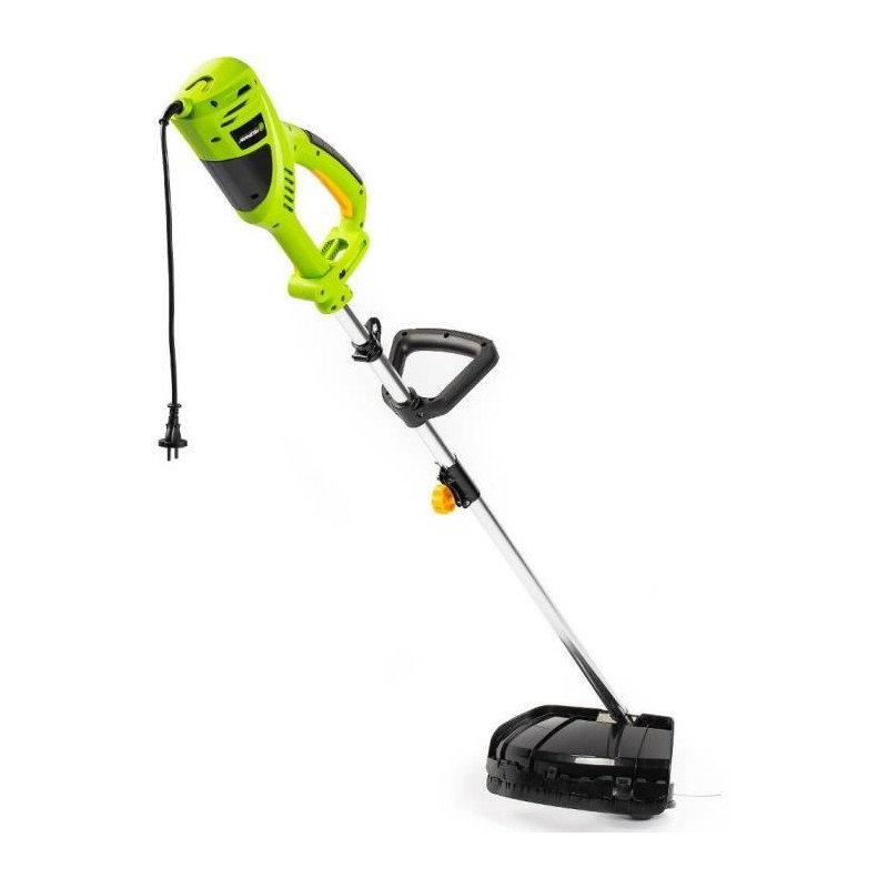 La débroussailleuse électrique FZS 2050-E de FIELDMANN, avec un moteur de 1400 W et un diametre de coupe de 42 cm, est légere (6 kg) et facile a manipuler. Son design noir et vert en acier inoxydable allie performance et esthétique, idéale pour l'entretien de votre jardin.