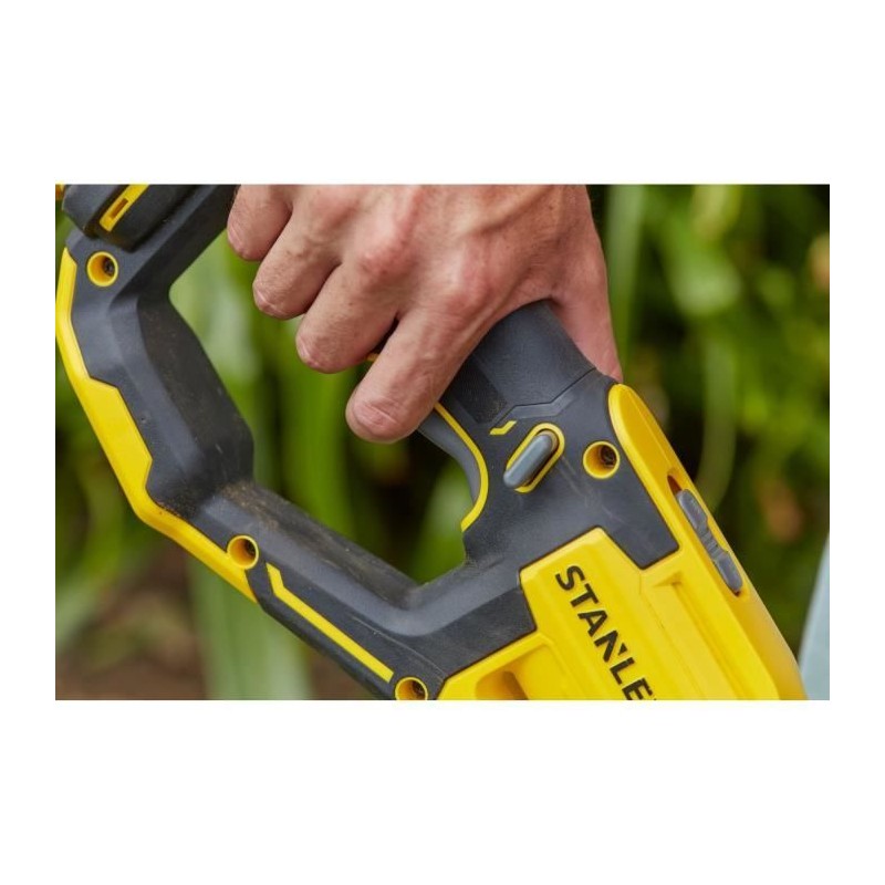 Coupe-bordure sans fil Stanley Fatmax SFMCST933M1, motorisé sur batterie 18 V. Largeur de coupe de 33 cm, léger (2,4 kg) et silencieux, il offre une autonomie prolongée grâce a sa batterie sans effet mémoire. Idéal pour tailler vos bordures facilement, avec un manche télescopique et 2 vitesses variables pour un confort d'utilisation optimal.