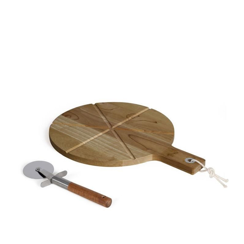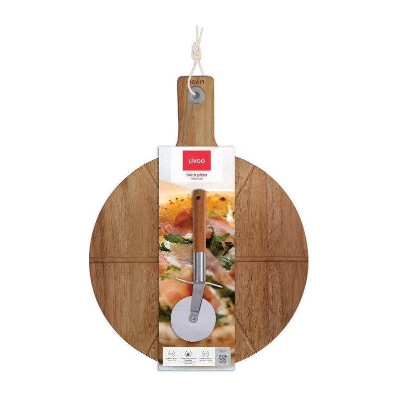 Set a pizza - LIVOO - MES158 - Bois acacia - 30 x 45 cm - 1 roulette a pizza - Poignée avec trou de suspension