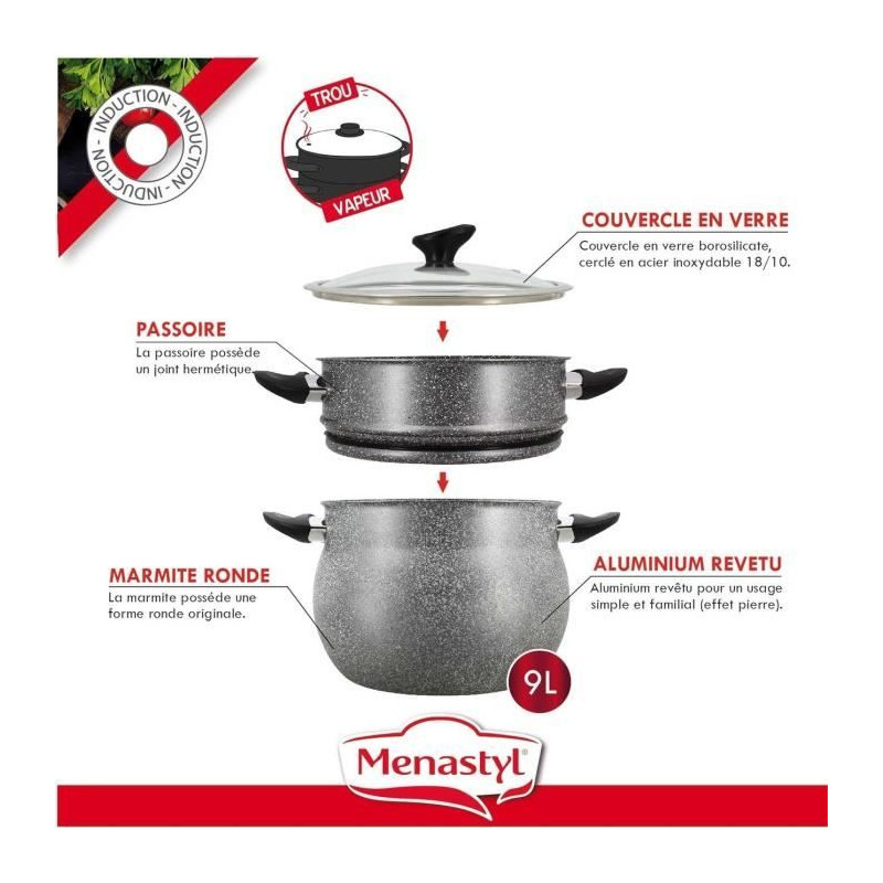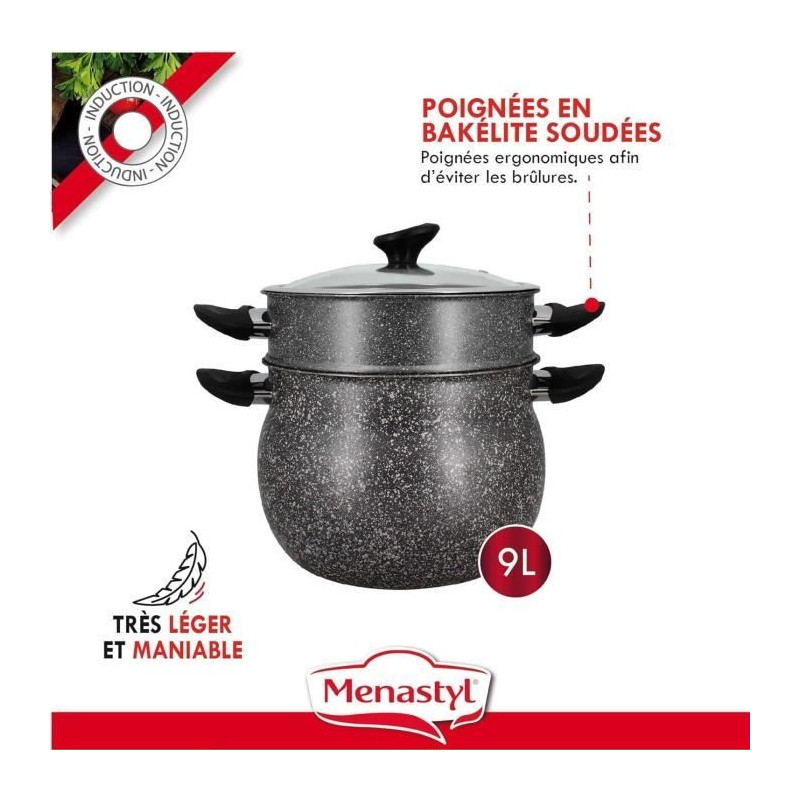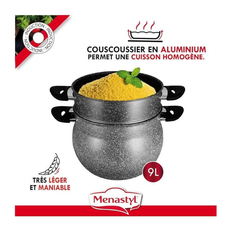 Couscoussier - MENASTYL - 6020033 - En aluminium effet marbre - 9 litres - Tous feux dont induction