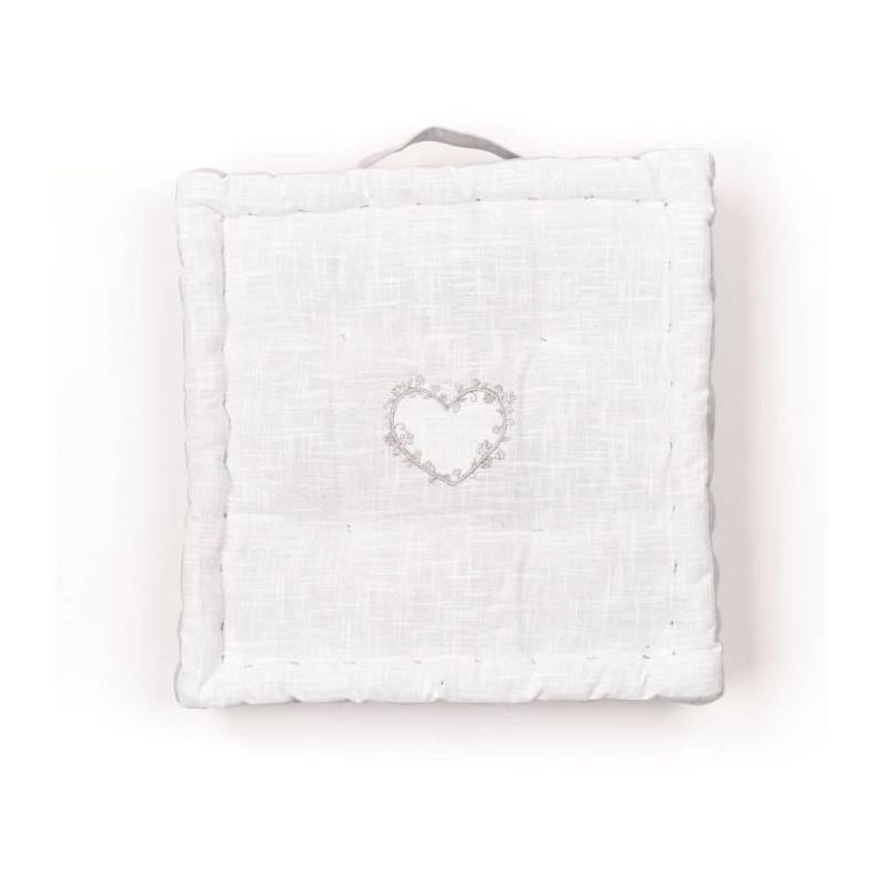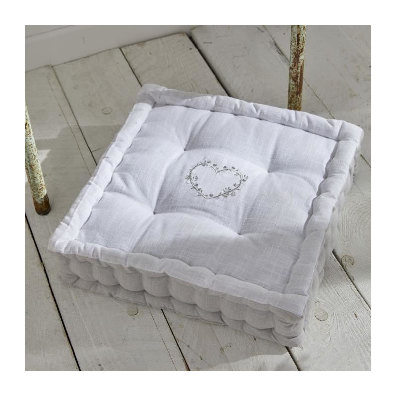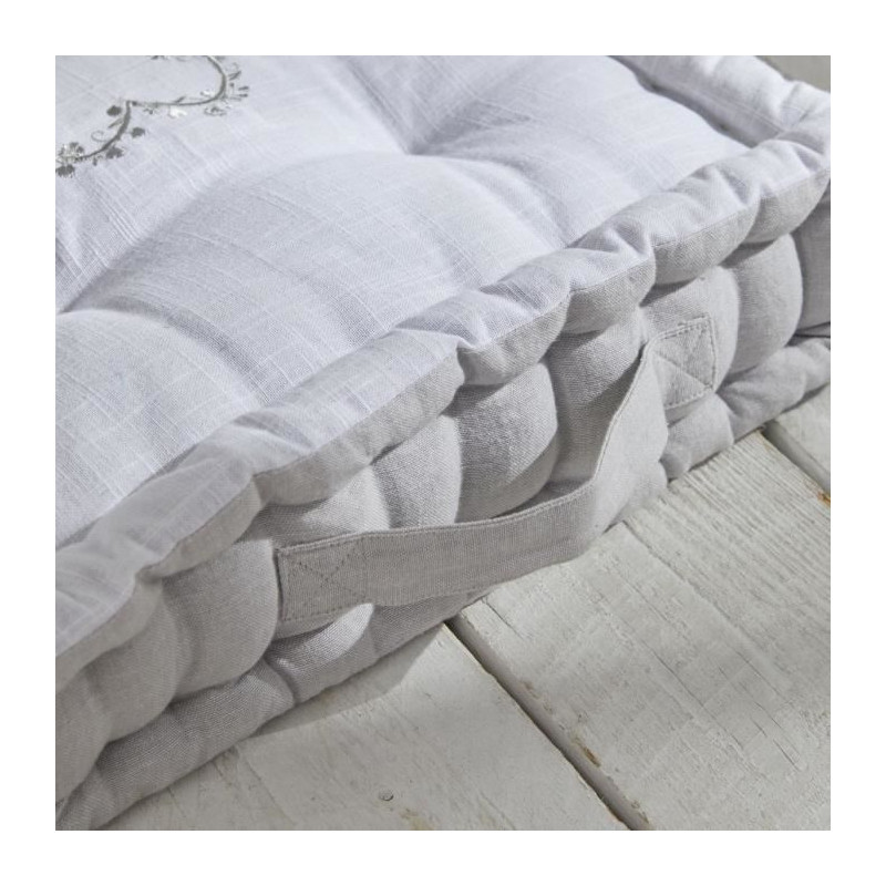 Coussin de sol - TODAY - CHARME - Slub x Chambray x Broderie Constance - 40 x 40 x 10 cm