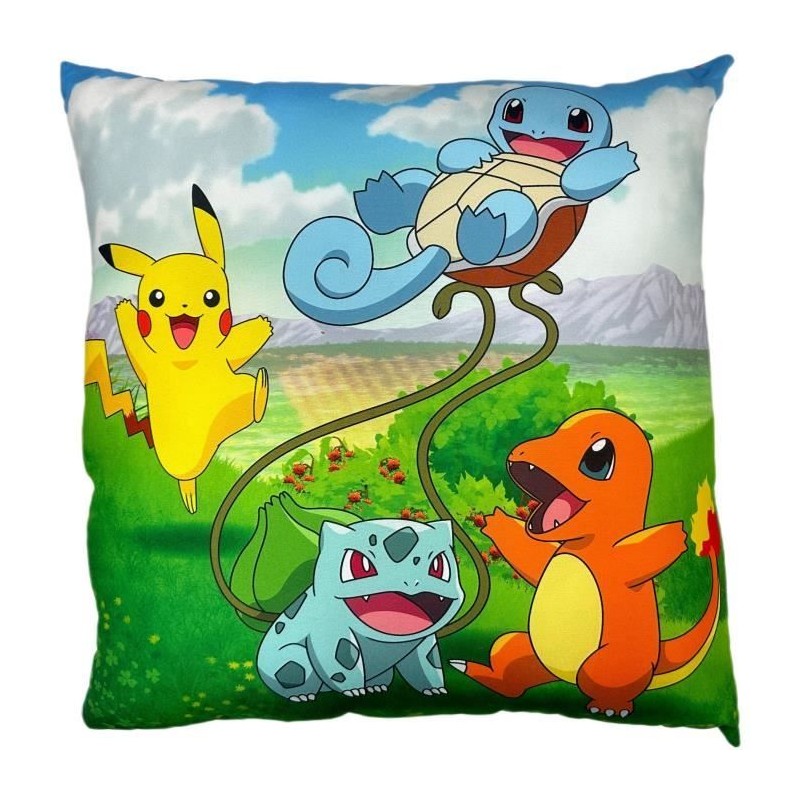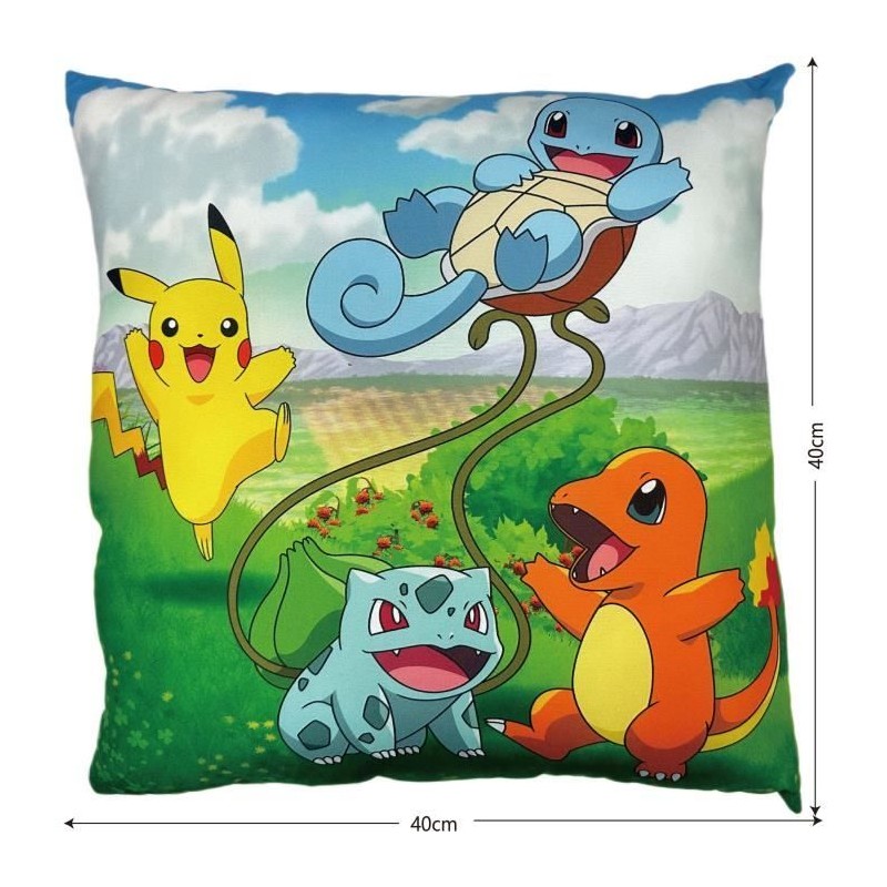 Coussin double face - Carré - POKEMON - Pikachu et Starter 1G II - Microfibre - 40 x 40 cm
