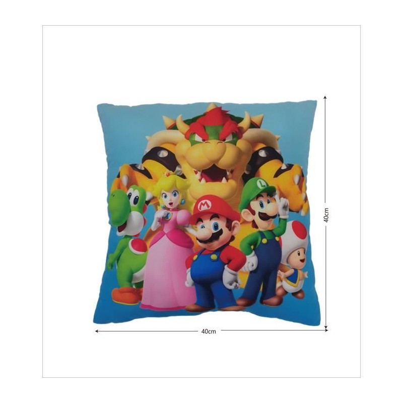 Coussin double face - Carré - MARIO BROS - Mario et ses amis - Microfibre - 40 x 40 cm