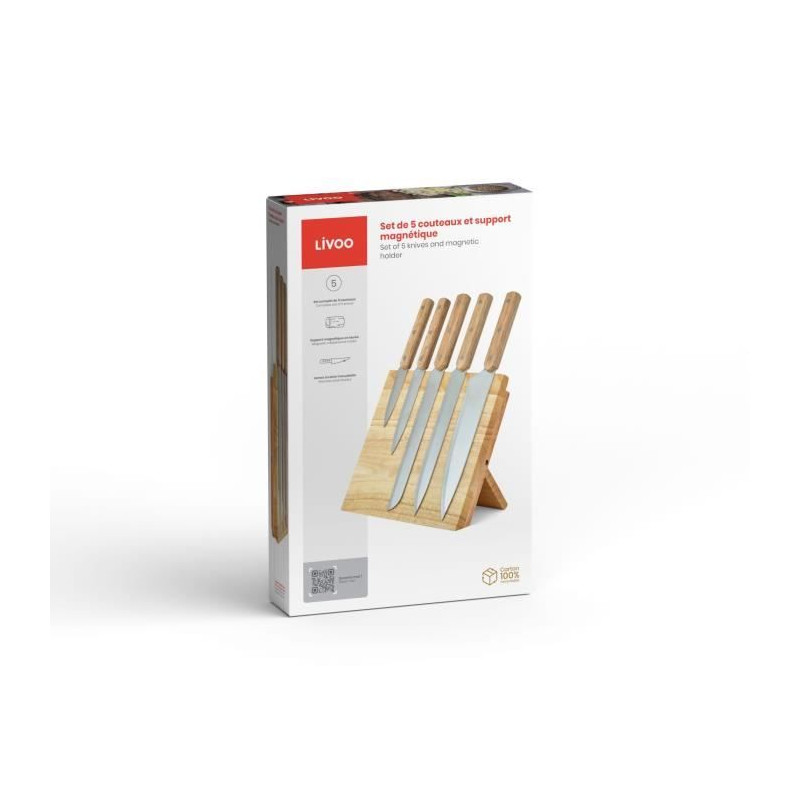 Set de 5 couteaux et support magnétique - LIVOO - MEC136 - 5 couteaux 20 a 32,5 cm - Lame acier inoxydable - Support magnétique