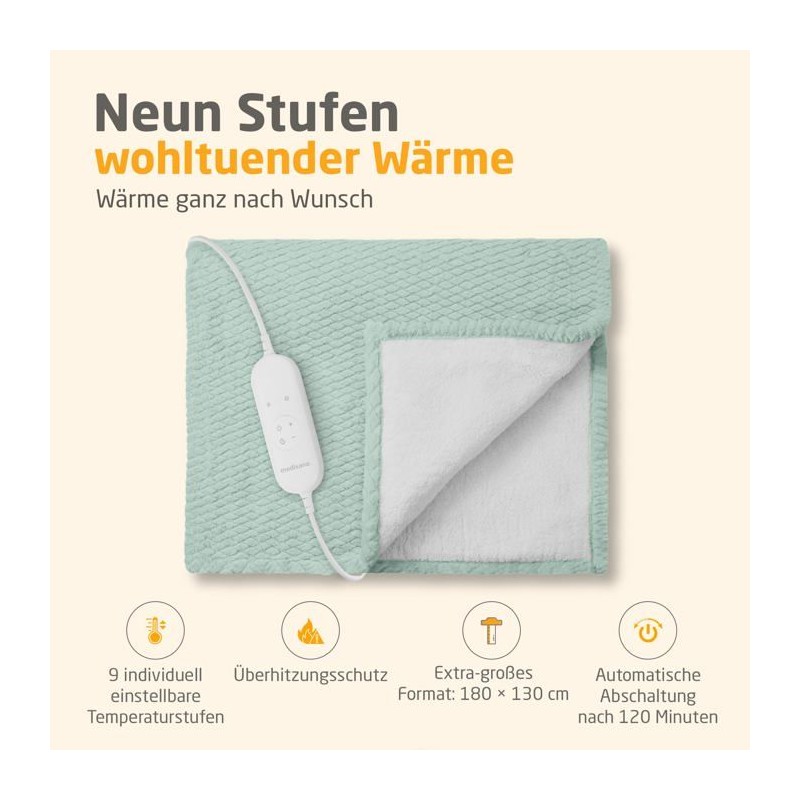 Couverture chauffante reversible - MEDISANA - HB 417 - 120 W - 9 réglages - 180 x 130 cm - Vert