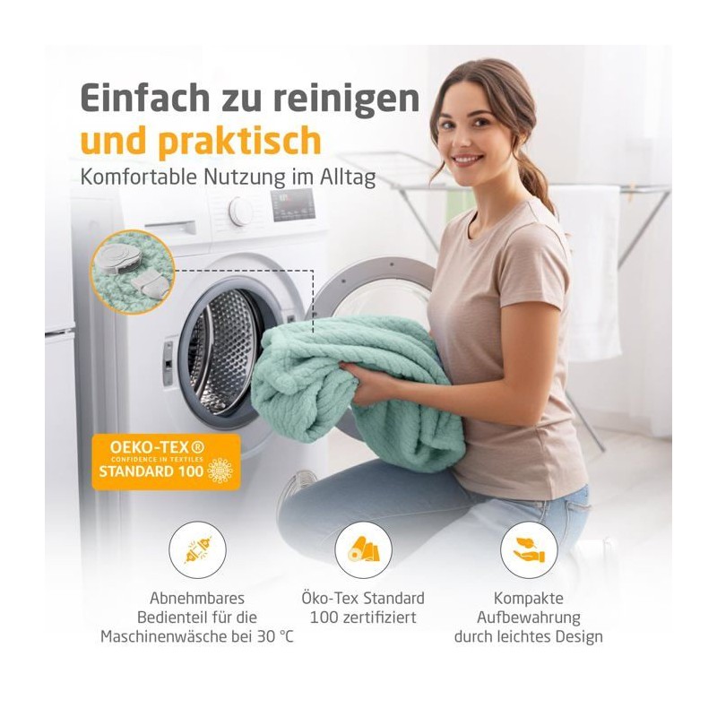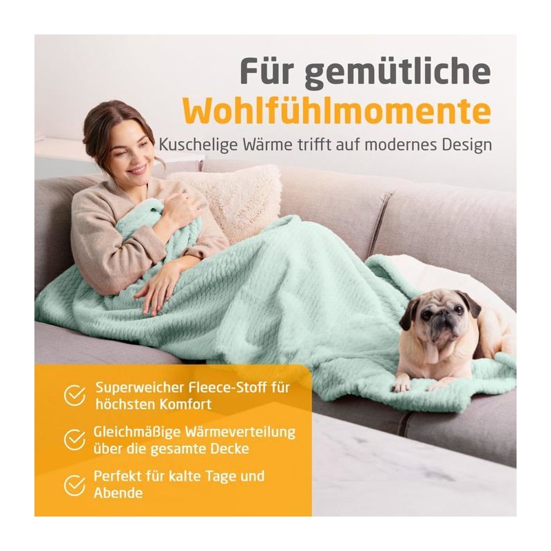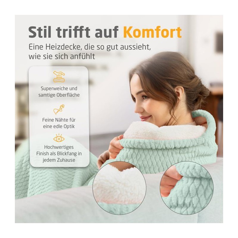 Un look frais et une chaleur enveloppante ! Cette couverture chauffante réversible vous accompagne tout l'hiver avec ses 120 W, ses 9 niveaux de température, et son arret automatique. Facile a entretenir grâce a sa commande amovible, elle est aussi douce que sécurisée.
