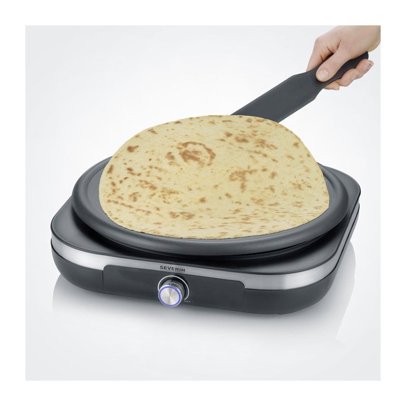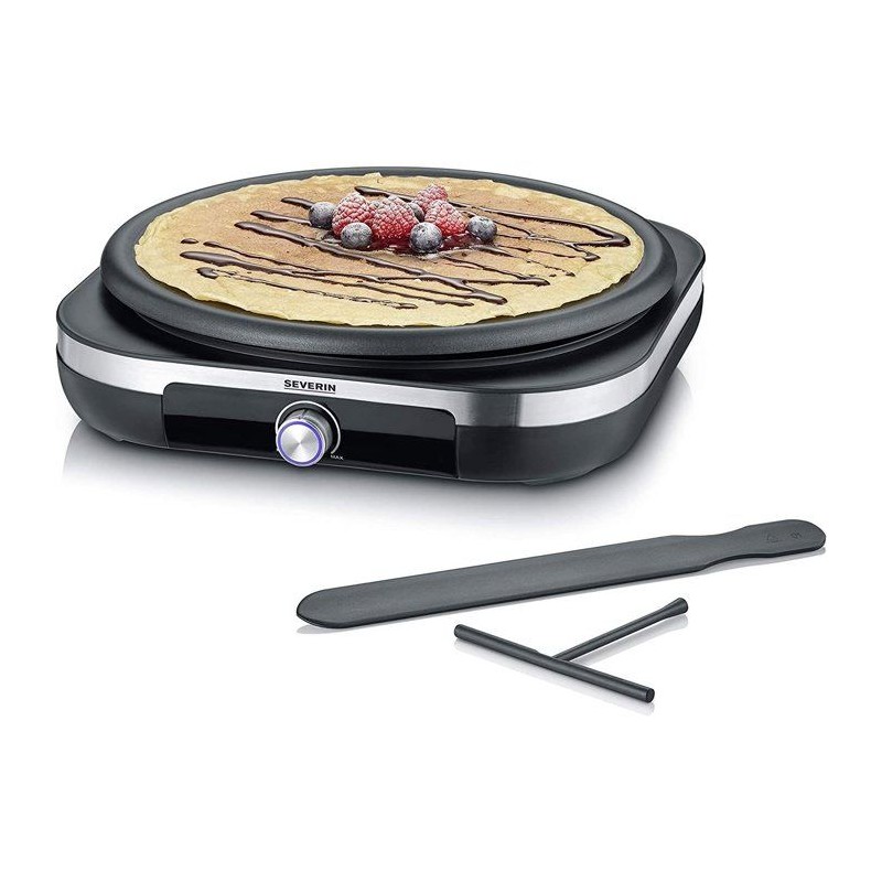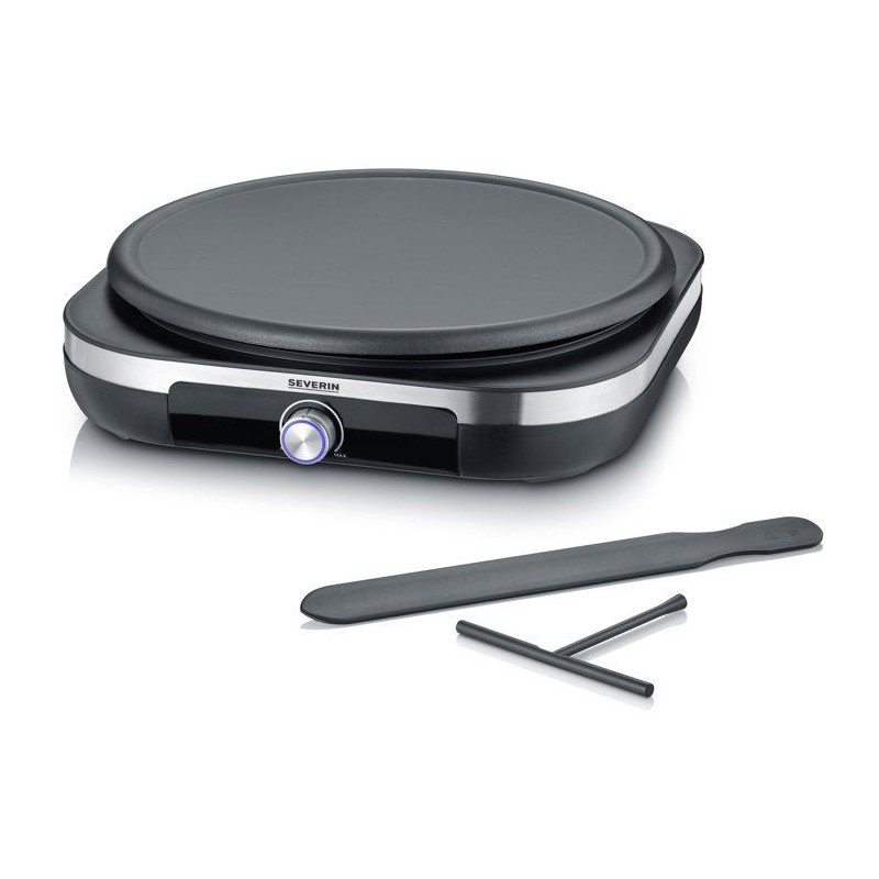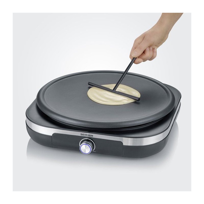 Crepiere électrique XXL - SEVERIN - CM2199 - Ø 38cm - Avec spatule et répartiteur - Inox brossé / Noir