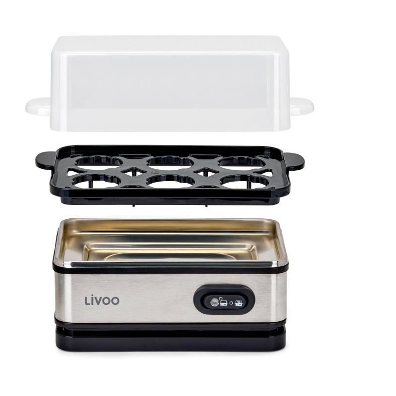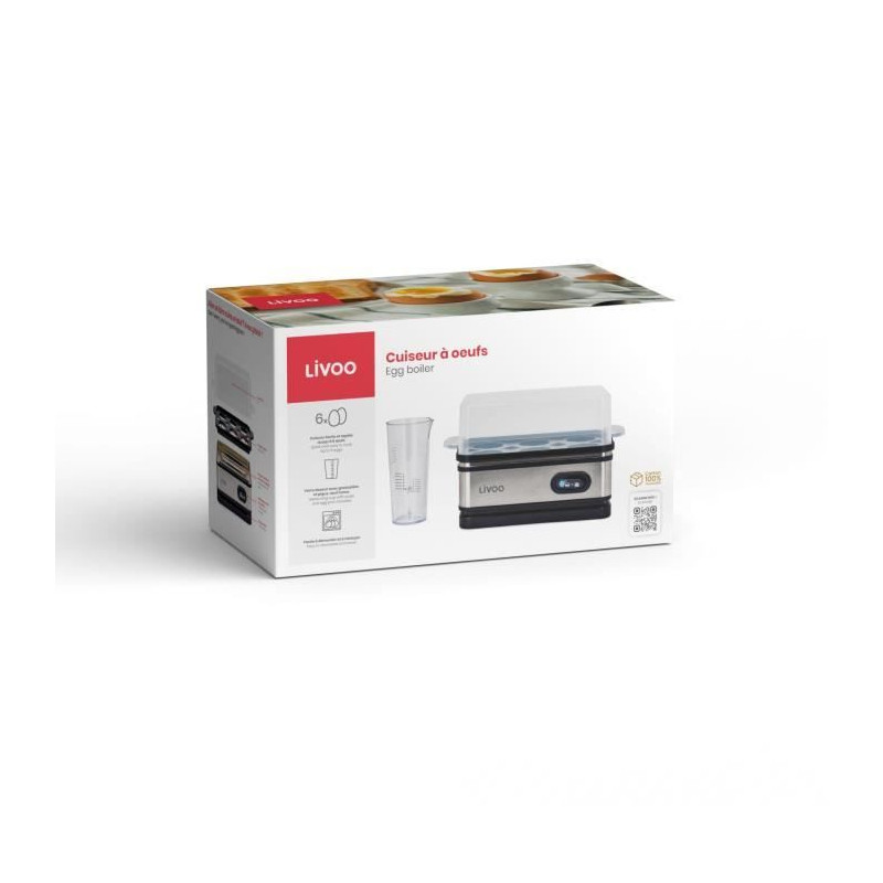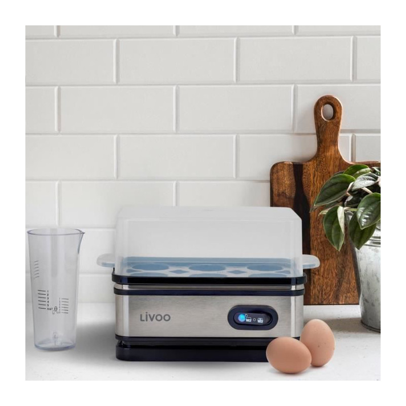 Cuiseur a oeufs - LIVOO - DOC290 - 400W - 6 oeufs - Acier inoxydable - Maintien au chaud - Support a oeufs, couvercle et verre d