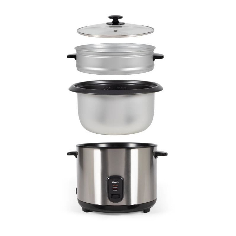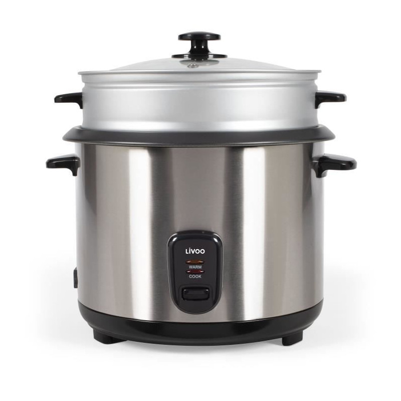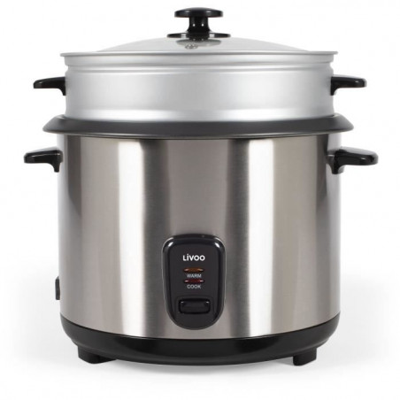 Cuiseur a riz et vapeur acier inoxydable - LIVOO - DOC293 - 1000W - 2,8L - Acier inoxydable - Maintien au chaud