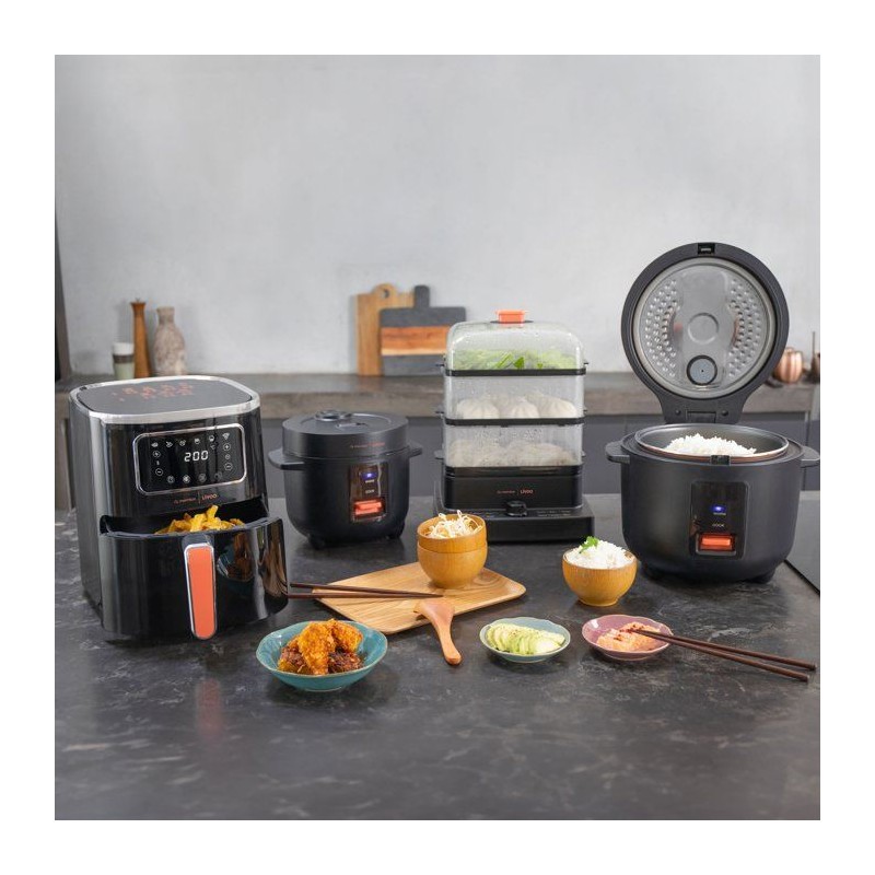 Découvrez une nouvelle maniere de cuisiner avec 7 recettes exclusives Livoo x Marmiton© accessibles instantanément via un QR code intégré. Profitez d'une cuve amovible dotée d'un revetement antiadhésif pour une utilisation simple et un nettoyage sans effort. Les accessoires indispensables - bol doseur et cuillere - sont inclus pour vous accompagner dans toutes vos préparations. Grâce a l'indicateur de niveau d'eau et a l'arret automatique, l'appareil garantit une utilisation sécurisée et parfaitement maîtrisée au quotidien.