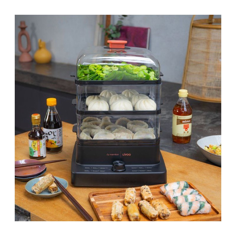 Cuiseur vapeur - LIVOO x Marmiton - DOC300 - 1000 - 1200 W - 3 paniers vapeur - Capacité totale de 12L