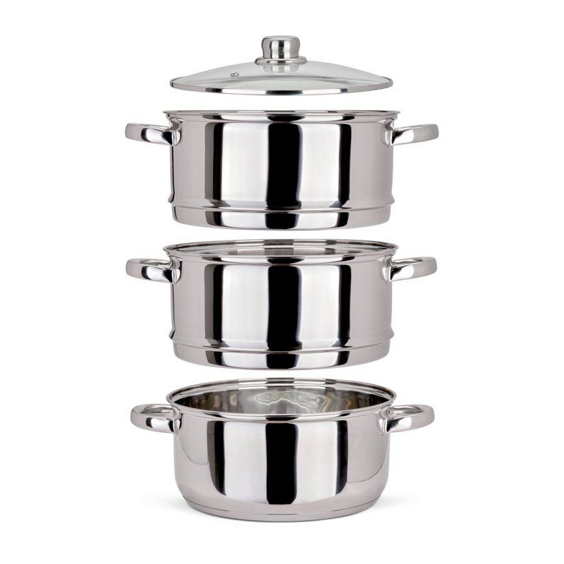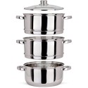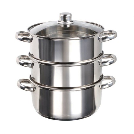 Faitout cuit vapeur - LIVOO - MEP121 - Acier inoxydable - Ø 24 cm - 1 faitout de 4 L - 2 paniers vapeur de 3 L et un couvercle