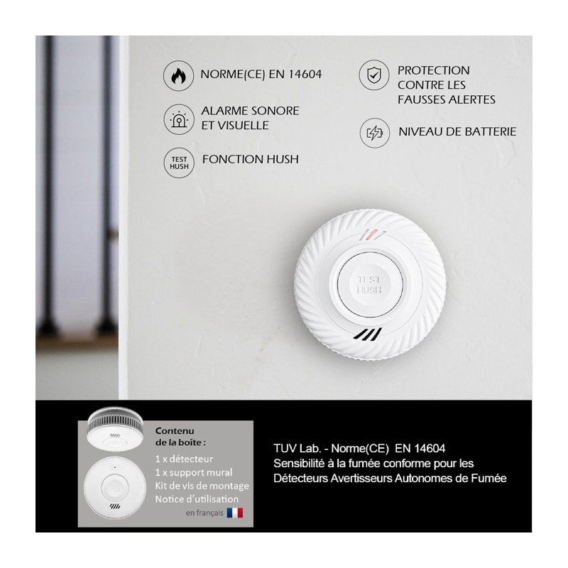 Détecteur de fumée - KYF - Wifi - CE - Pile 10 ans scellée