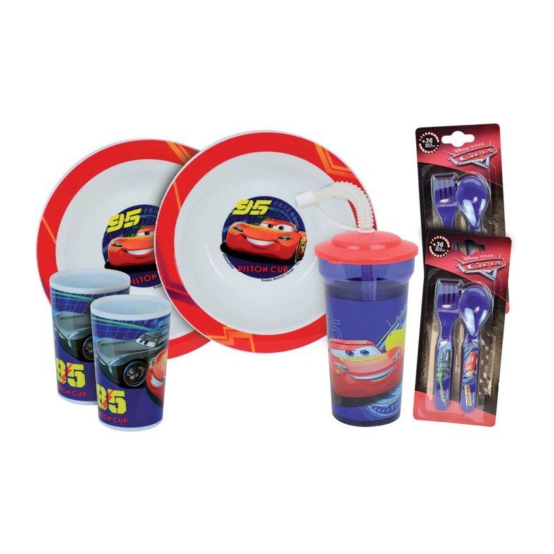 Lot vaisselle - FUN HOUSE - DISNEY CARS - 2 Verres, 2 Assiettes creuses Ø16 cm, 2 lots de couverts, Gobelet paille