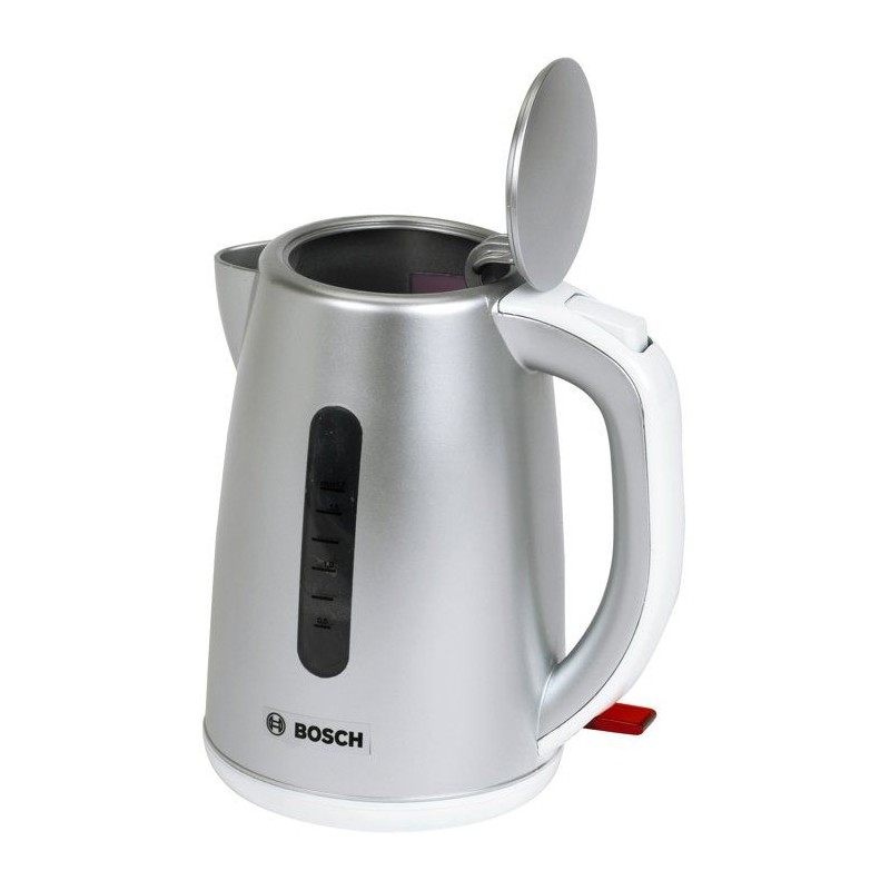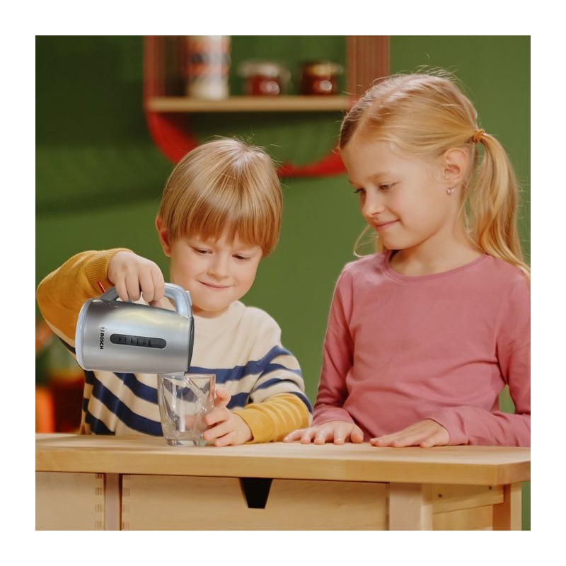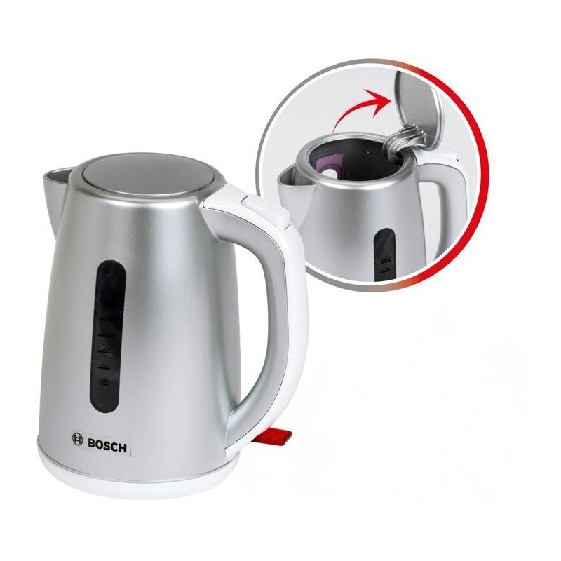 Offrez aux enfants une expérience de jeu unique et amusante avec cette bouilloire sous licence Bosch en plastique de grande qualité, reproduction fidele du modele original. Elle possede un couvercle qui s'ouvre - en appuyant sur le bouton situé en haut de la poignée - et se referme. Les enfants peuvent ainsi la remplir d'eau tres facilement et faire semblant de la faire chauffer en appuyant cette fois sur l'interrupteur situé sous la poignée. Légere et facile a manipuler, elle est idéale pour compléter une cuisine ou offrir un cadeau original. Stimule la créativité, l'imagination et l'habileté manuelle des enfants, tout en encourageant le partage et les moments conviviaux. Sans danger, pas de fonction de chauffe. Dimensions hors emballage : 12 x 8,5 x 13,5 cm. A partir de 3 ans.