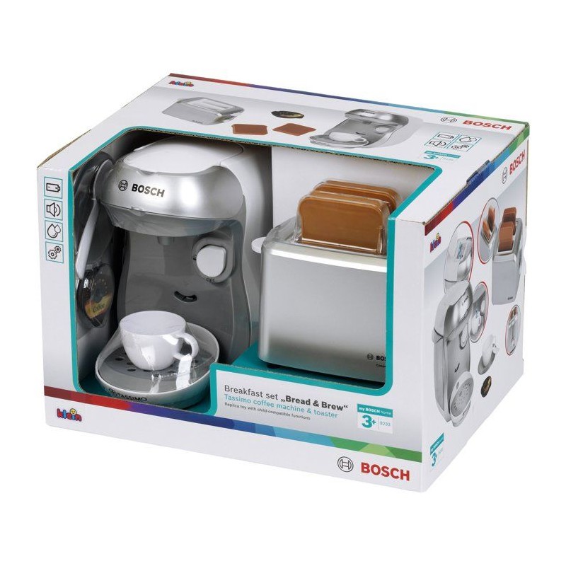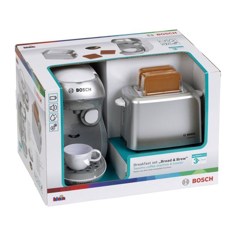 Set petit-déjeuner Bosch - KLEIN - 9233 - Machine a café, grille-pain et accessoires - Jouet d'imitation - Des 3 ans