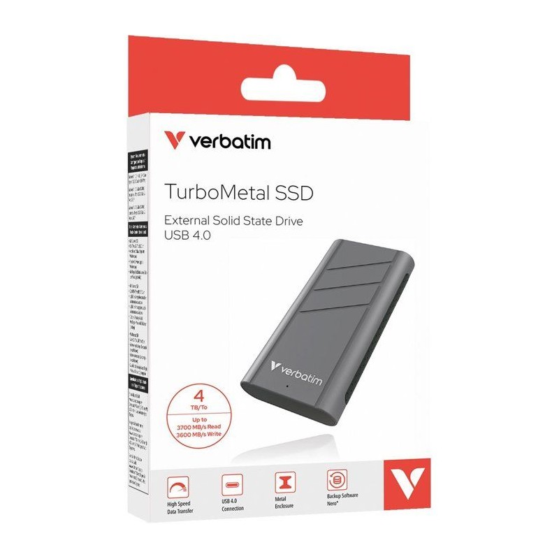 Disque SSD externe - VERBATIM - TurboMetal - 4 To - Gris