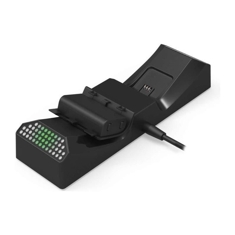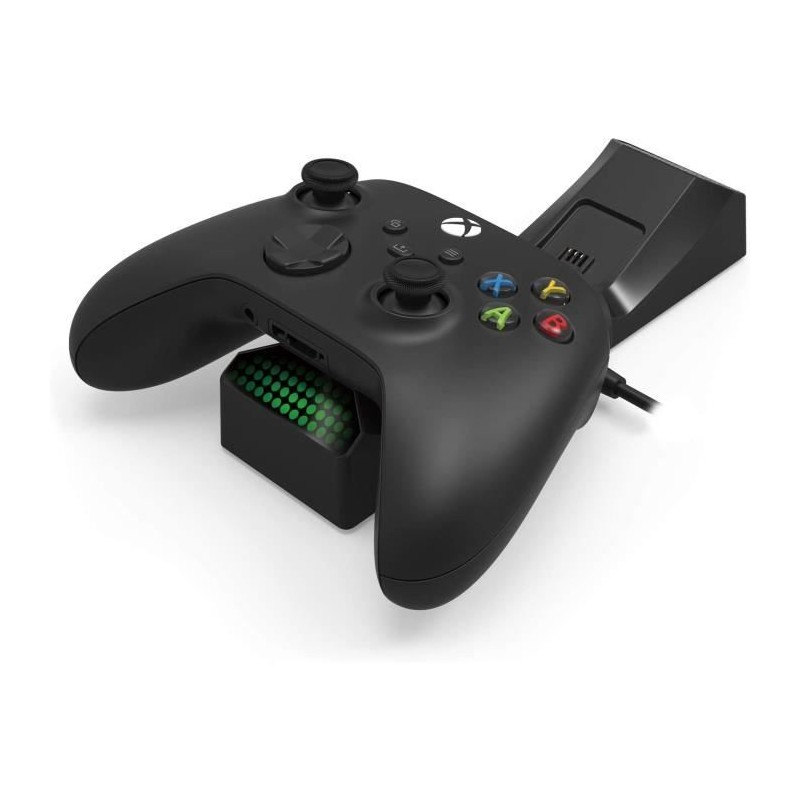 Ne laissez pas les batteries usées vous retenir ! Chargez simultanément deux manettes et / ou batteries avec la station de charge double HORI conçue pour Xbox Series X | S. Chargez facilement les contrôleurs et les batteries en les plaçant simplement sur le chargeur ! La station de charge se connecte a la console via USB. .Vérifiez l'état de charge d'un contrôleur ou d'une batterie en un coup d'oeil. Les lumieres intégrées indiquent une charge en rouge et une charge complétée en vert. Comprend également deux batteries et quatre couvercles de batterie compatibles avec les contrôleurs sans fil Xbox Series X | S, les contrôleurs sans fil Xbox Elite (series 1 ou 2) et les contrôleurs sans fil Xbox One. Charge maximale pouvant atteindre 20h, selon les fonctions activées comme les vibrations , l'utilisation d'accessoires audio etc. Licencié par Microsoft.