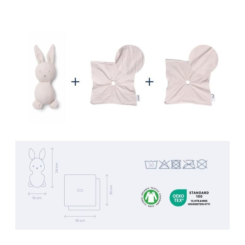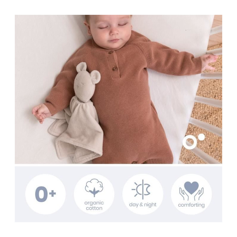 Assure une présence réconfortante aupres de bébé - Fourni avec 2 corps, pratique pour laver le doudou - Doudou chargé de l'odeur du parent - Bi-matiere : Gaze de coton et éponge organique ultra doux - 2 tetes d'animaux : rituel jour/nuit - Dimension idéale - Cotton organique & doux - Certifié oeko-tex et GOTS