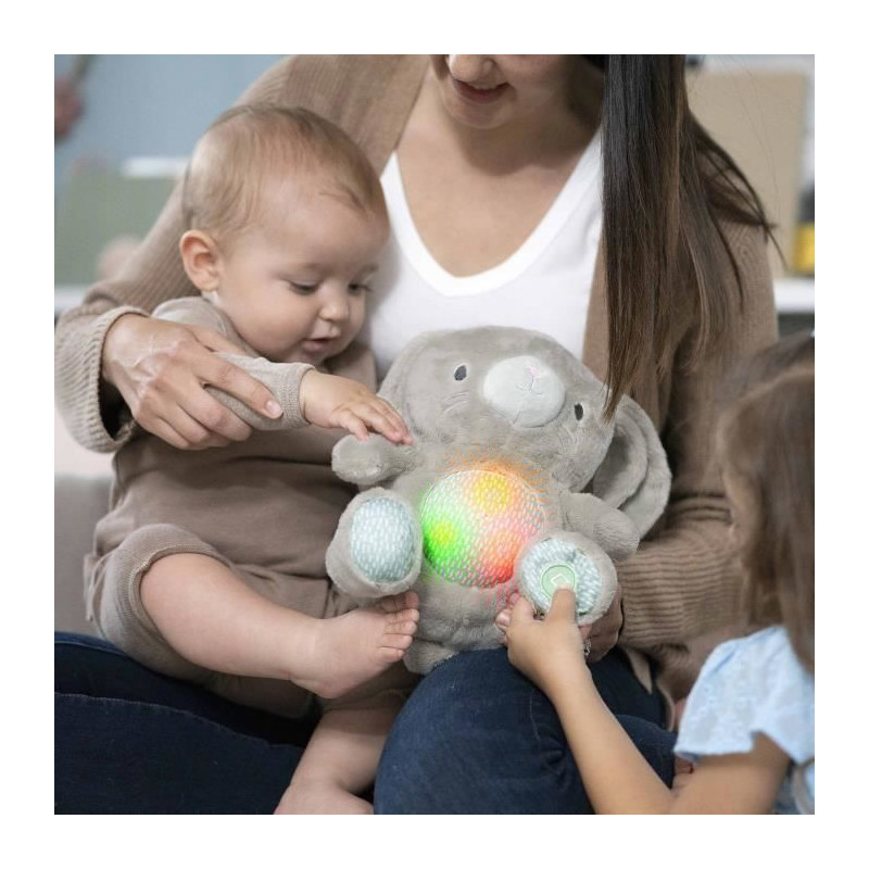 INGENUITY Doudou bébé lapin Sylvi, peluche, mélodies et vibrations apaisantes, lumineux, cadeau naissance