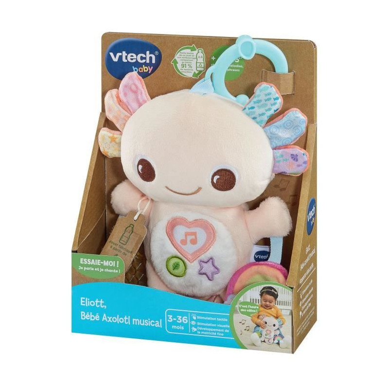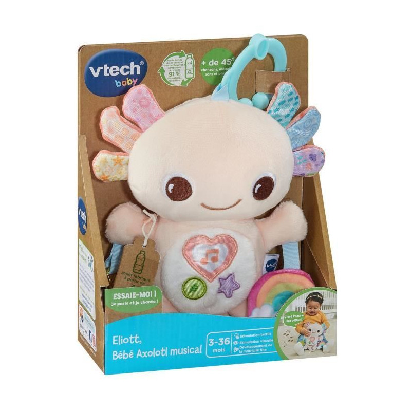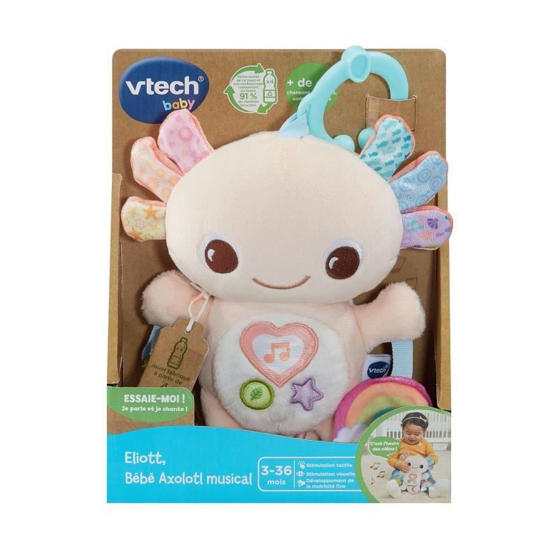 VTECH ELIOTT, BEBE AXOLOTL MUSICAL (BOUTEILLES PLASTIQUE RECYCLÉES)