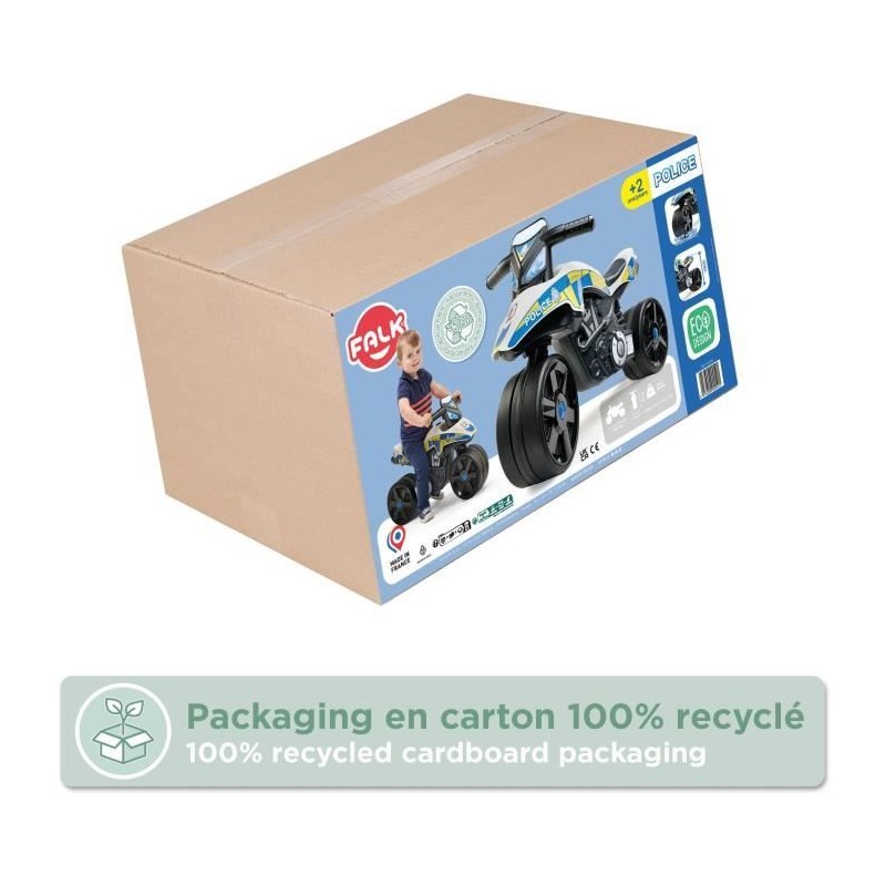 Draisienne Moto Police - FALK - Larges roues et Guidon directionnel - Fabriqué en France - 40% de plastique recyclé - Des 2 an