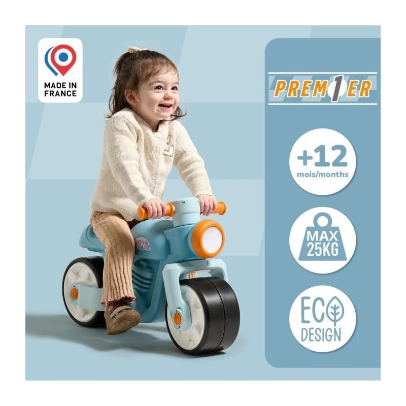 Draisienne Moto Premier - FALK - Avec roues silencieuses - Bleu - 75% Plastique Recyclé - 100% Fabriqué en France - Des 12 mo