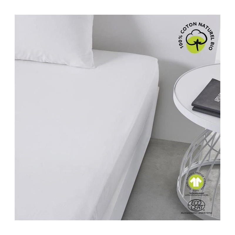 Drap housse - TODAY - 180 x 200 cm + 30 cm - Coton - Organic Craie