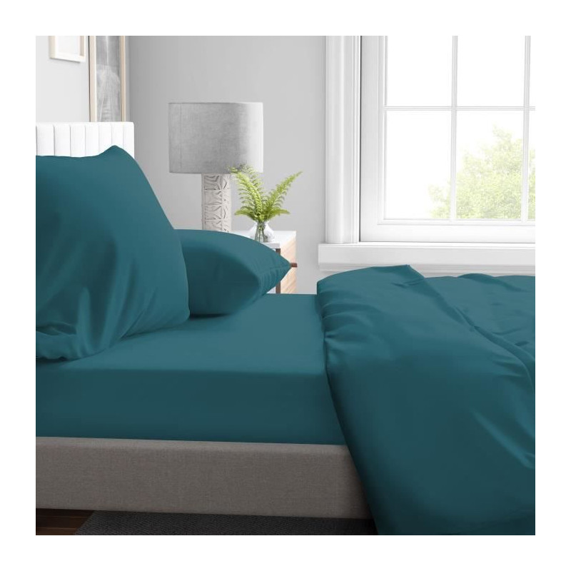 Drap housse - HOME LINGE PASSION - HP72117 - Microfibre 82 g - 180 x 200 cm - Bonnet 30 cm - Bleu canard
