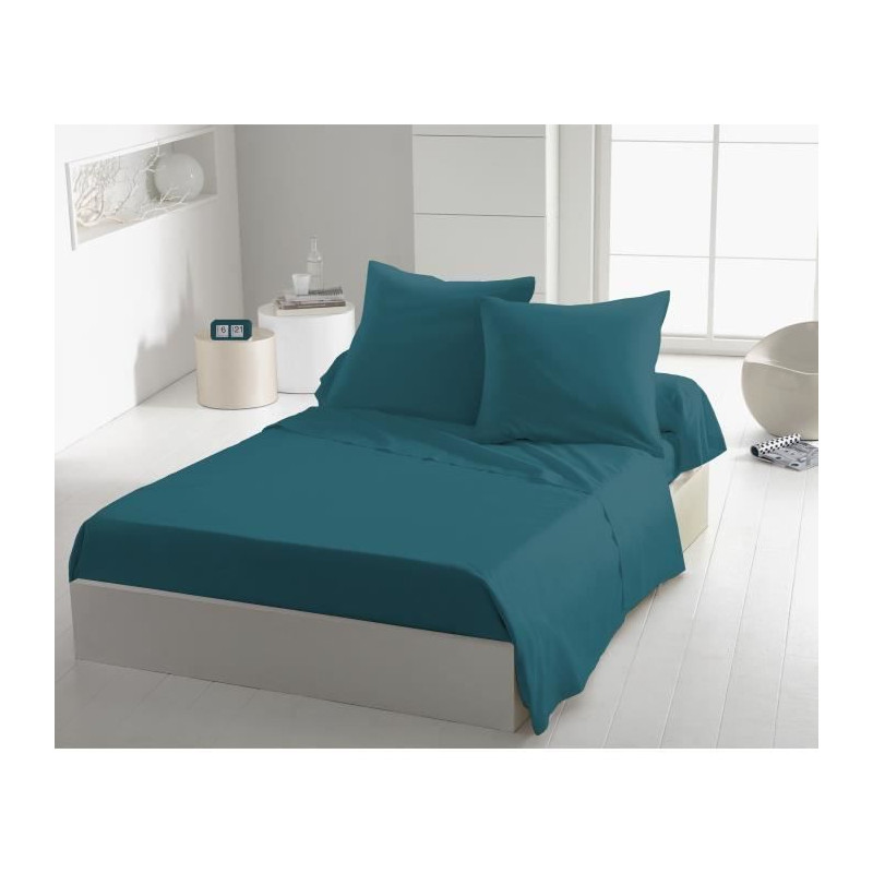Drap plat - HOME LINGE PASSION - HP72100 - Microfibre 82 g - 180 x 290 cm - Bleu canard