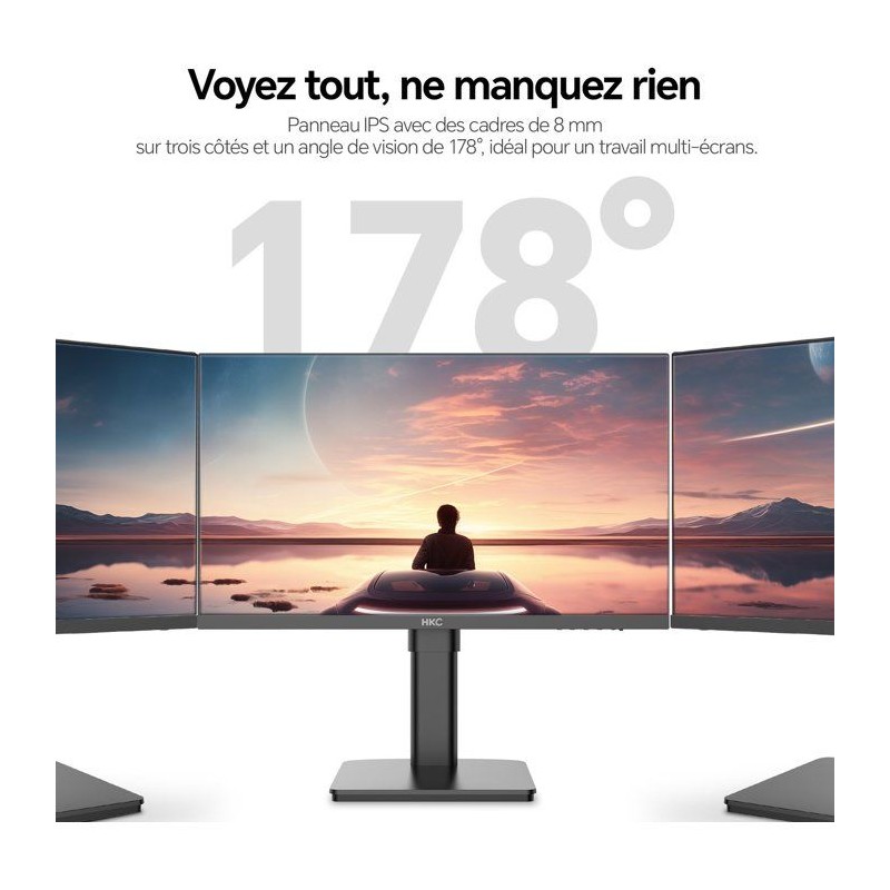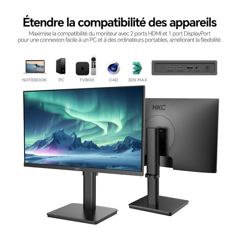 L'écran 27'' HKC T2752U délivre une qualité d'image exceptionnelle grâce a sa résolution 4K UHD 3840x2160 et sa dalle IPS au format 16:9, idéale pour un confort visuel précis et immersif. Avec un rafraîchissement de 60 Hz, un contraste de 1000:1 et une luminosité de 350 cd/m², il assure des images nettes, lumineuses et parfaitement détaillées. Son temps de réponse de 5 ms garantit une expérience fluide au quotidien. Doté de 2 ports HDMI et d'un DisplayPort, compatible VESA 75x75, inclinable, réglable en hauteur jusqu'a 80 mm et équipé d'un pivot grâce a son pied HAS, il offre une ergonomie complete pour s'adapter a tous les usages. Son design noir épuré s'integre avec élégance dans tous les environnements professionnels ou personnels.