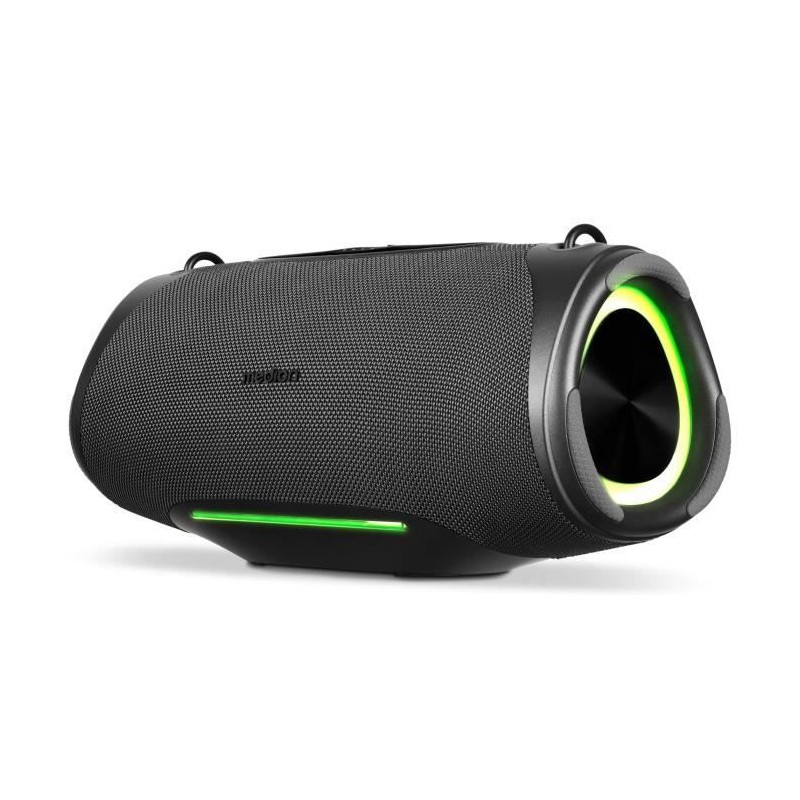 Pensée pour la maison comme pour les déplacements, cette enceinte robuste au format classique délivre un son riche grâce a ses deux radiateurs de basses passifs, deux tweeters et deux woofers, avec un mode Bass Boost. Elle dispose du Bluetooth 5.3, d'une batterie de 36 Wh pour jusqu'a 47 heures d'écoute, d'une protection IPX7, d'un mode Broadcast, d'une fonction de banque d'énergie, d'effets lumineux RGB et d'une puissance de 2 x 25 W RMS.