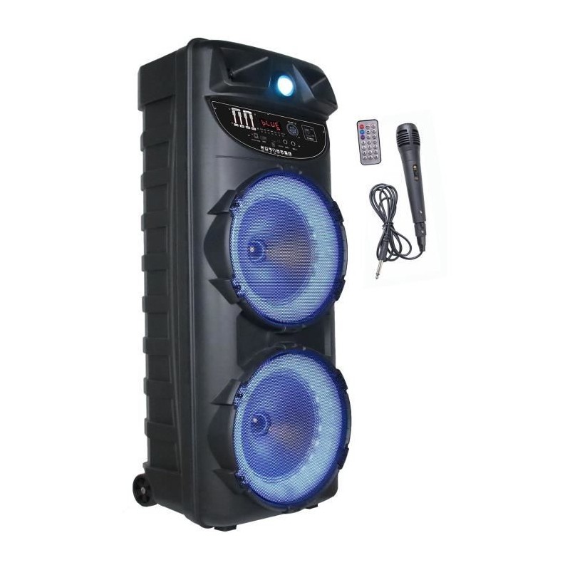 Enceinte lumineuse 1000 Watts - Haut-parleurs 2x10 pouces + tweeter 1x1 pouce - Bluetooth V5.0 - Fonction jumelage 2 x MS02-XXL-N (Mode TWS) - Ecran LED - Radio FM - Port USB 2.0 - Port carte mémoire Micro SD - Entrée AUX-IN - Fonction karaoké - Fonction micro prioritaire - 2 entrées micro 6.5mm