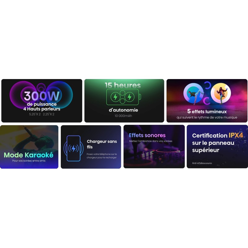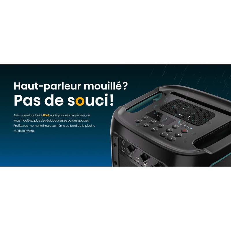 Transformez vos soirées avec l'enceinte nomade HISENSE. Avec 300 W de puissance et une autonomie de 15 heures, elle offre un son exceptionnel. Sa connectivité Bluetooth et son design robuste vous permettent de profiter de la musique partout avec style.