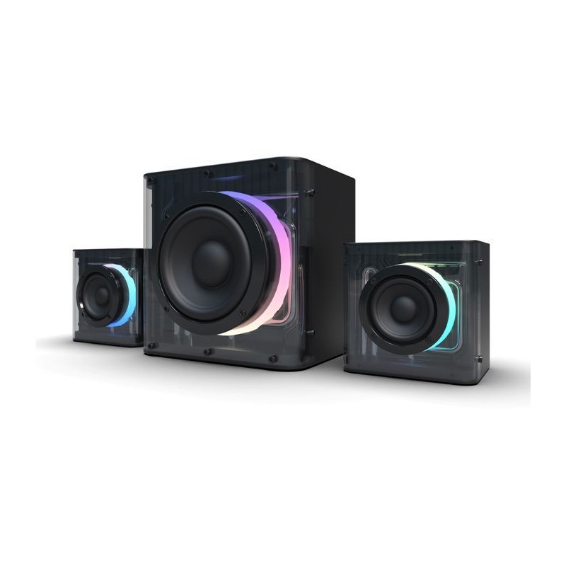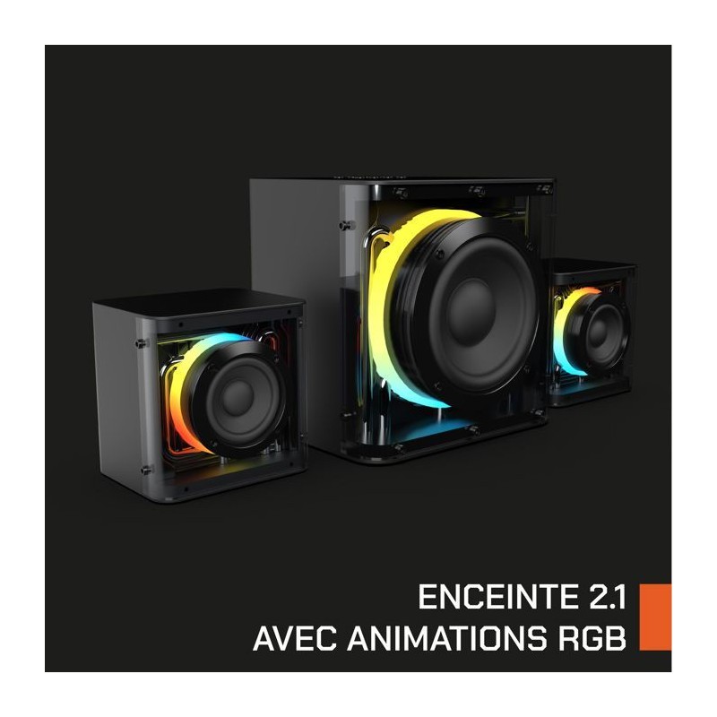 Le systeme gaming SERPENTIS 2.1 offre un son puissant et immersif accompagné d'un design transparent unique sublimé par un éclairage LED RGB dynamique. Son caisson de basses renforcé assure des graves profonds tandis que les satellites diffusent un son clair et équilibré, idéal pour le jeu, les films ou la musique. Esthétique, moderne et performant, il transforme n'importe quel espace en véritable environnement gaming.