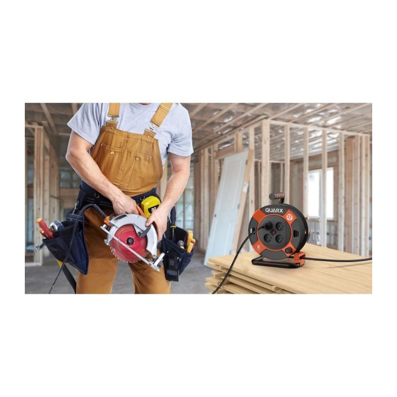 Enrouleur de bricolage - QUARX - 25m - H05VV-F 3G1,5mm² - Disjoncteur thermique - Protection enfants
