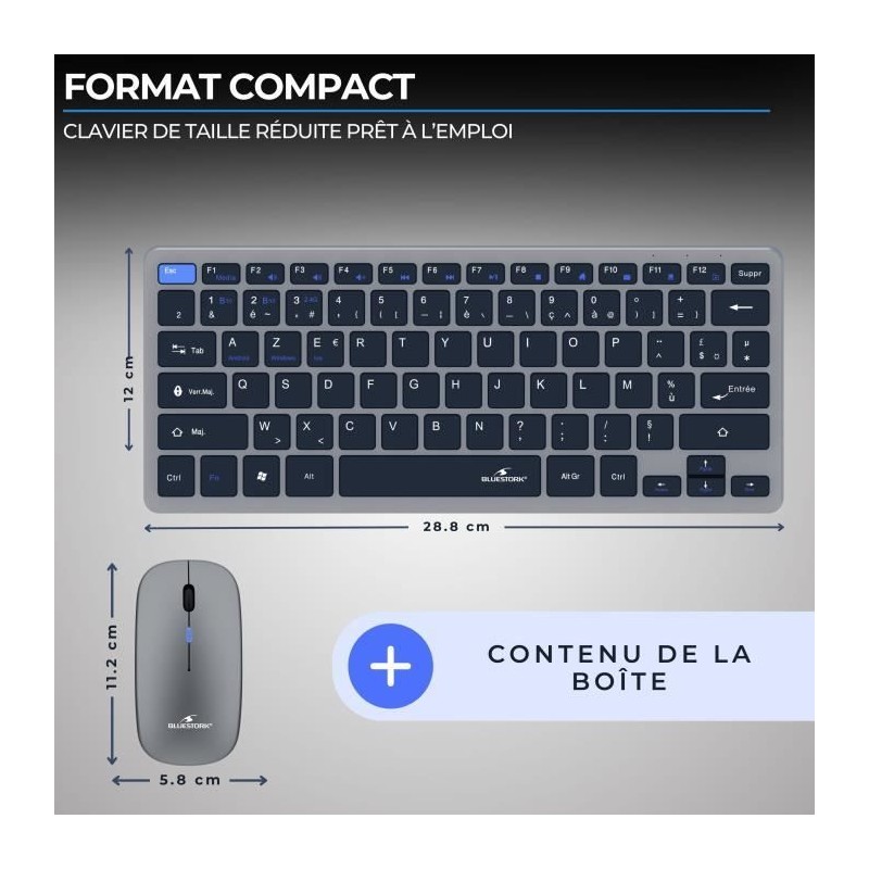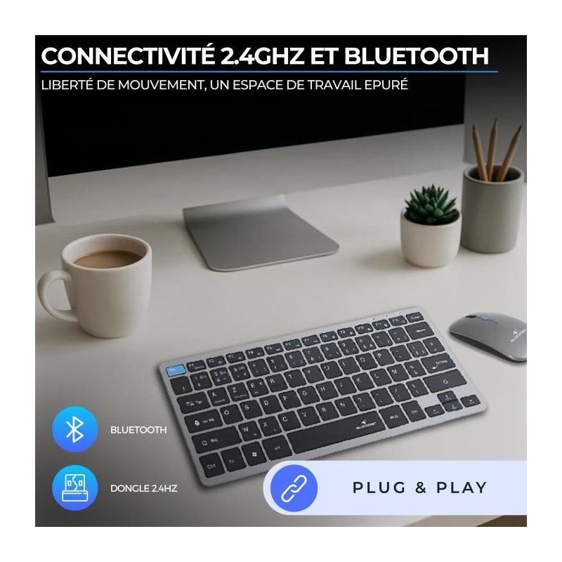 Ensemble Clavier Souris sans fil - BLUESTORK - Pack Mini - Bluetooth & Dongle - Ultra fin et léger - Nomade Télétravail