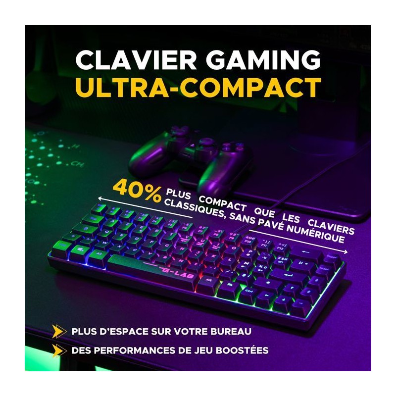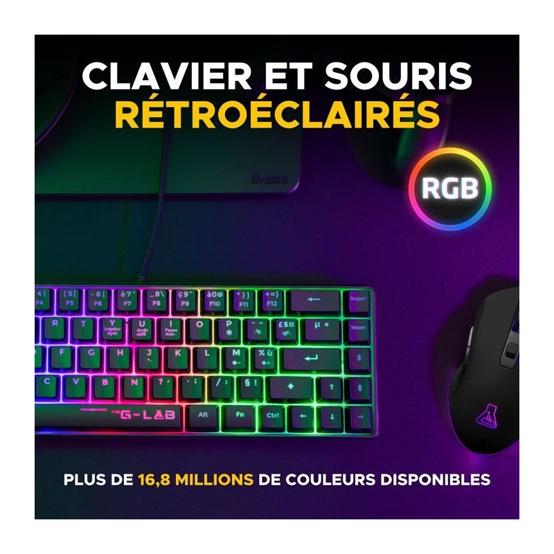 Pack gamer clavier souris filaire - THE G-LAB - Combo Hydrogen BKG - Clavier Azerty - Noir
