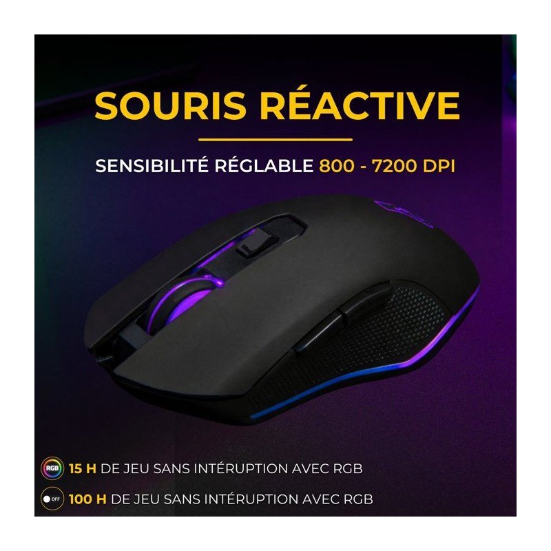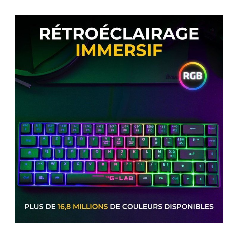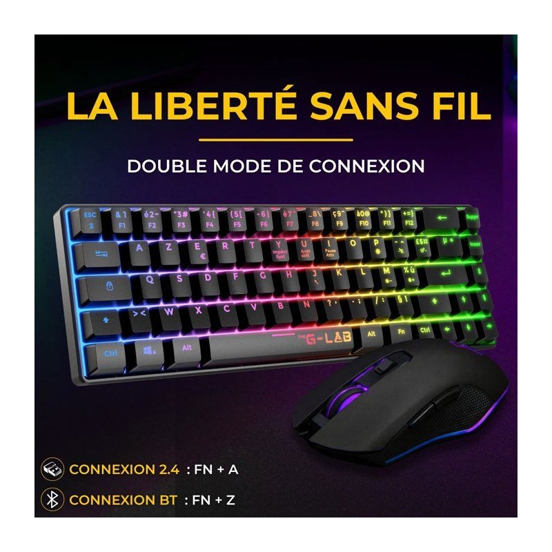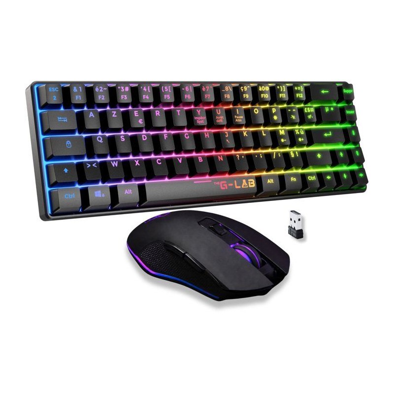 Pack Gamer 2-en-1 sans fil - THE G-LAB - COMBO HYDRO - Clavier membrane réactive et silencieuse + Souris - Noir