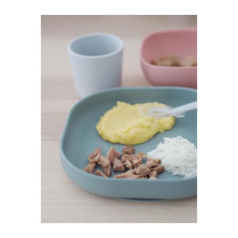 COFFRET REPAS SILICONE : Coffret repas silicone composé d'une assiette et d'un bol avec ventouse, ainsi que d'un verre et cuillere 2eme âge silicone. Pour accompagner bébé et ses parents lors des premiers repas. Assiette et bol avec ventouse pour adhérer a la table. Design conçus pour faciliter la prise des aliments.