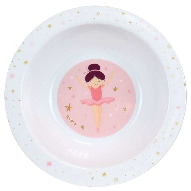 Lot vaisselle - FUN HOUSE - DANSEUSE BALLERINE - Assiette creuse Ø16 cm, plate Ø22 cm, verre 220 ml et peluche musicale 40 cm