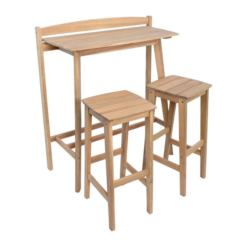 Ensemble bar de jardin - ZANZIBAR - Bois d'Acacia FSC - 1 table rectangulaire 44,5 x 100 x 112 cm - 2 tabourets 37 x 35 x 72 cm