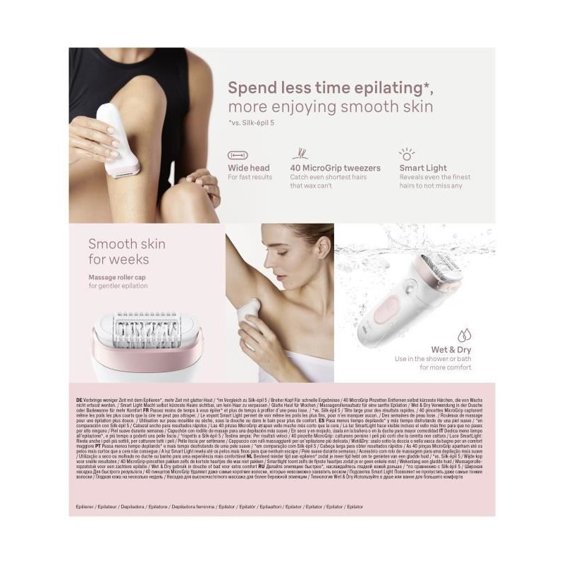 Épilateur électrique - BRAUN - SILK EPIL 7 SE 7-000 - 2 vitesses - Sans fil - 40 min - Blanc / Rose