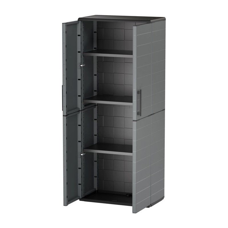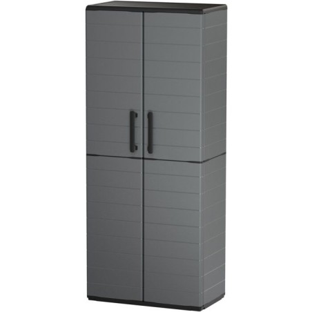 Armoire haute - TOOD - 2 portes + 3 étgageres en polypropylene - 68 x 37 x H.163 cm - Gris