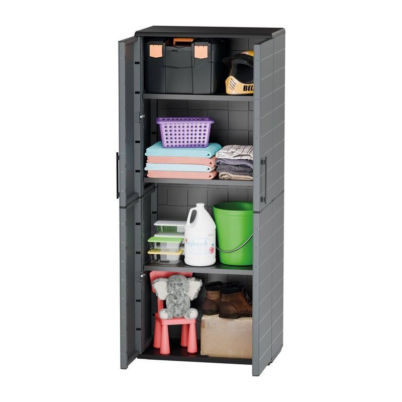 Optimisez votre rangement avec élégance ! Cette armoire haute TOOD, conçue en polypropylene robuste, offre 3 étageres spacieuses derriere ses 2 portes pour accueillir outils, accessoires et produits du quotidien. Sa structure légere mais résistante assure une excellente tenue, meme en usage intensif. Avec son design gris moderne et ses dimensions pratiques, elle trouve facilement sa place dans un garage, un cellier ou un atelier.