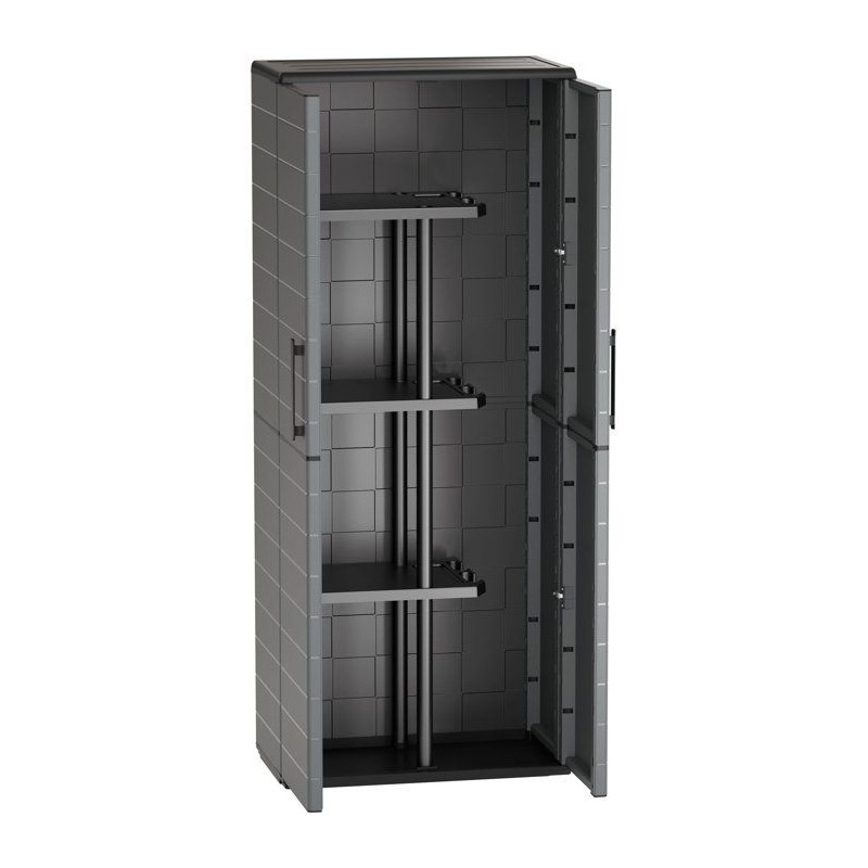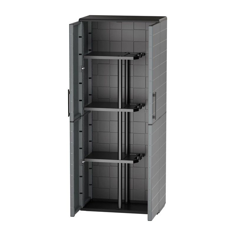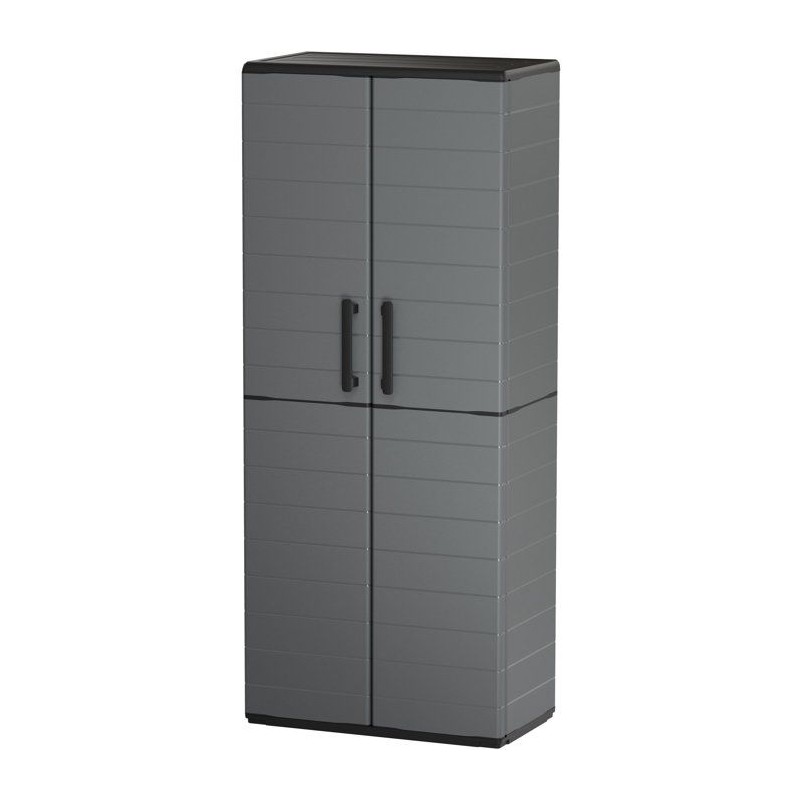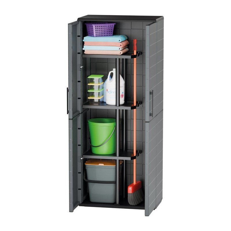 Armoire porte-balai - TOOD - 2 portes + 3 étgageres en polypropylene - 68 x 37 x H.163 cm - Gris