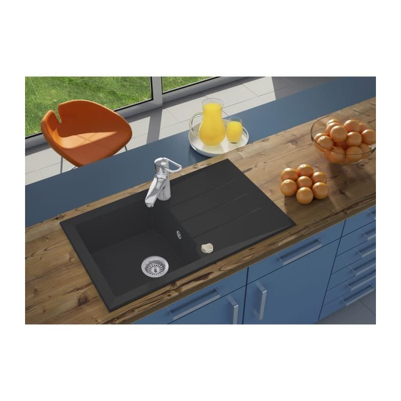 Evier - Résine BMC - Noir - A encastrer - STRADOUR - Alineo 1C - 81 x 50 cm